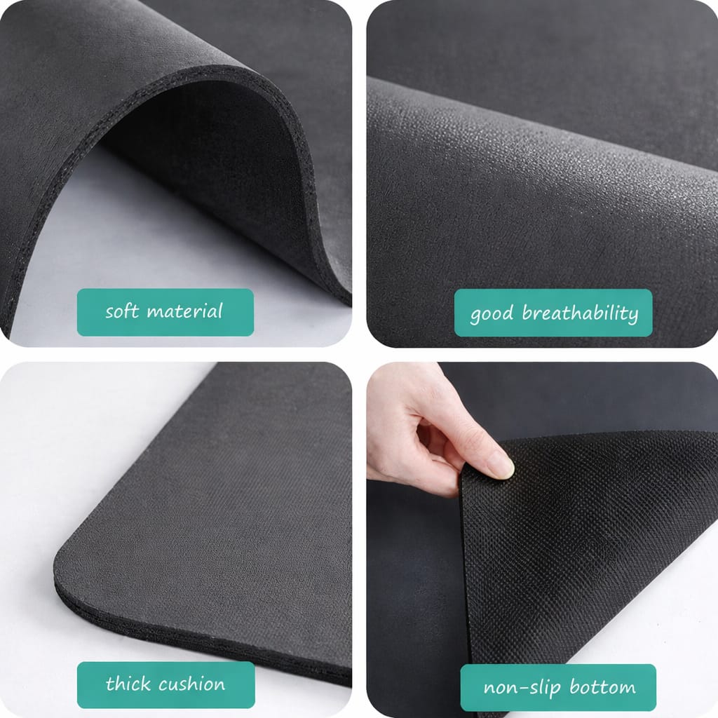 Easy-to-maintain mat with rapid water absorption—just rinse clean and air dry.Soft, anti-slip, and skin-friendly design keeps your kitchen counter clean and safe.